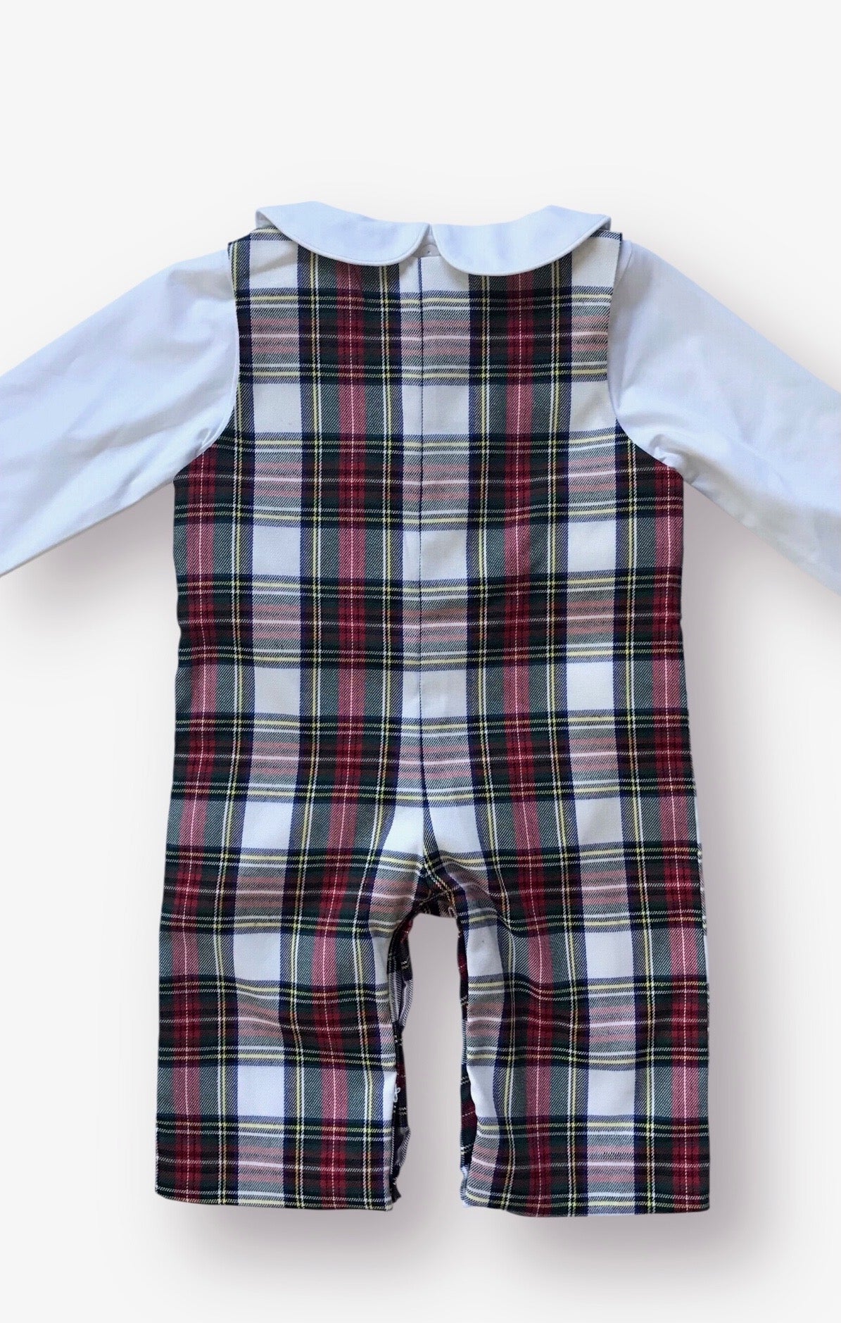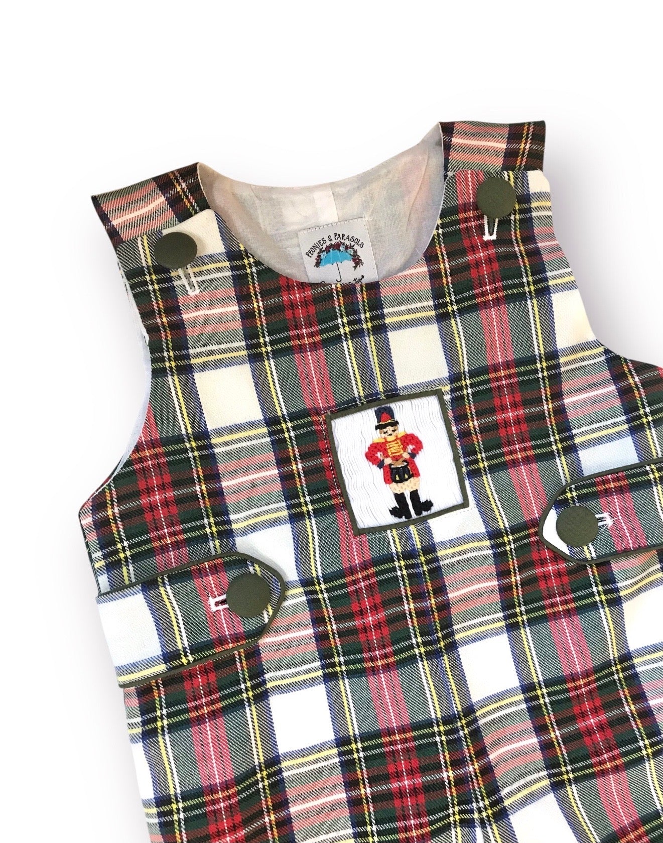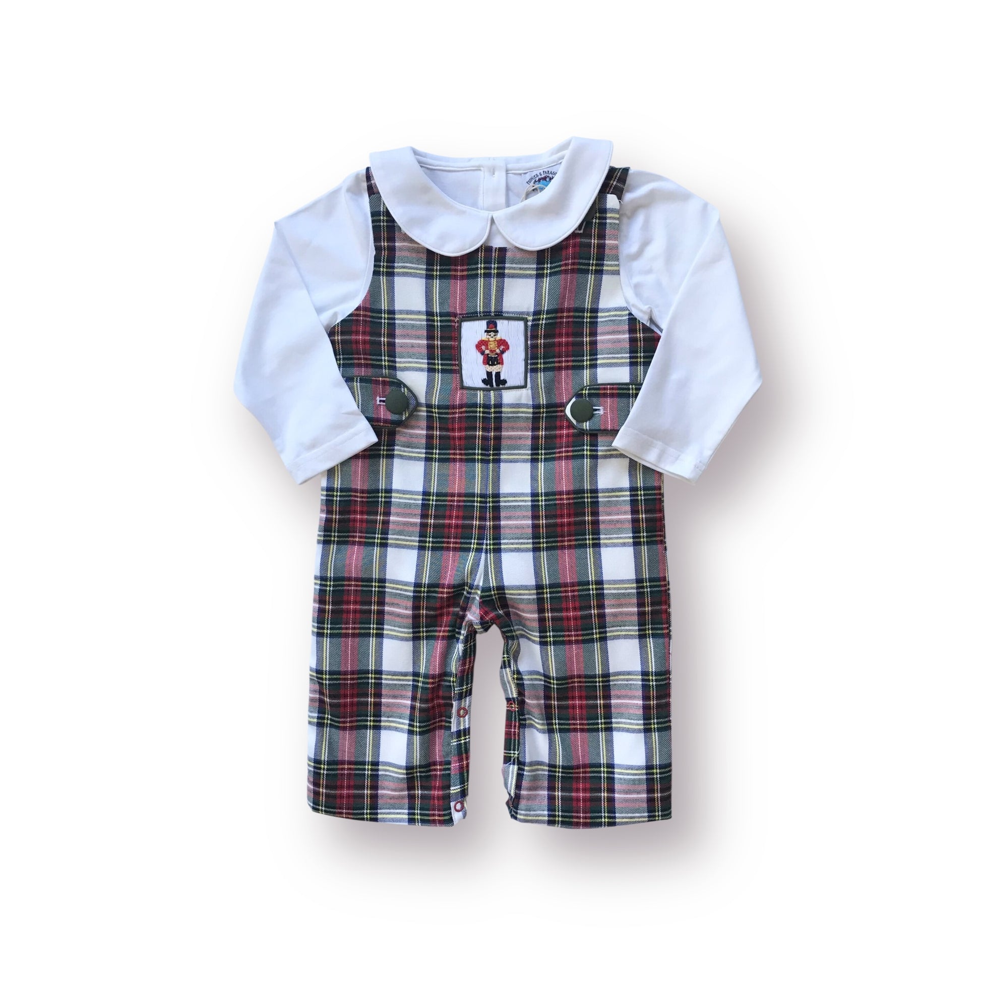 Our Little Drummer Boy Longall is designed with a tartan plaid fabric of classic Christmas colors that coordinates well as a sibling match. The “little drummer boy” is hand-smocked on the chest and accented with olive green piping. Snaps at the stride and buttons in on the shoulders make dressing a breeze. We recommend pairing with our Peter Pan Collared Bodysuit (sold separately) for colder weather.