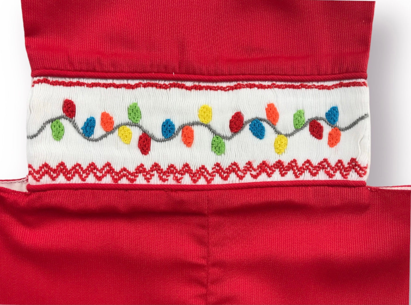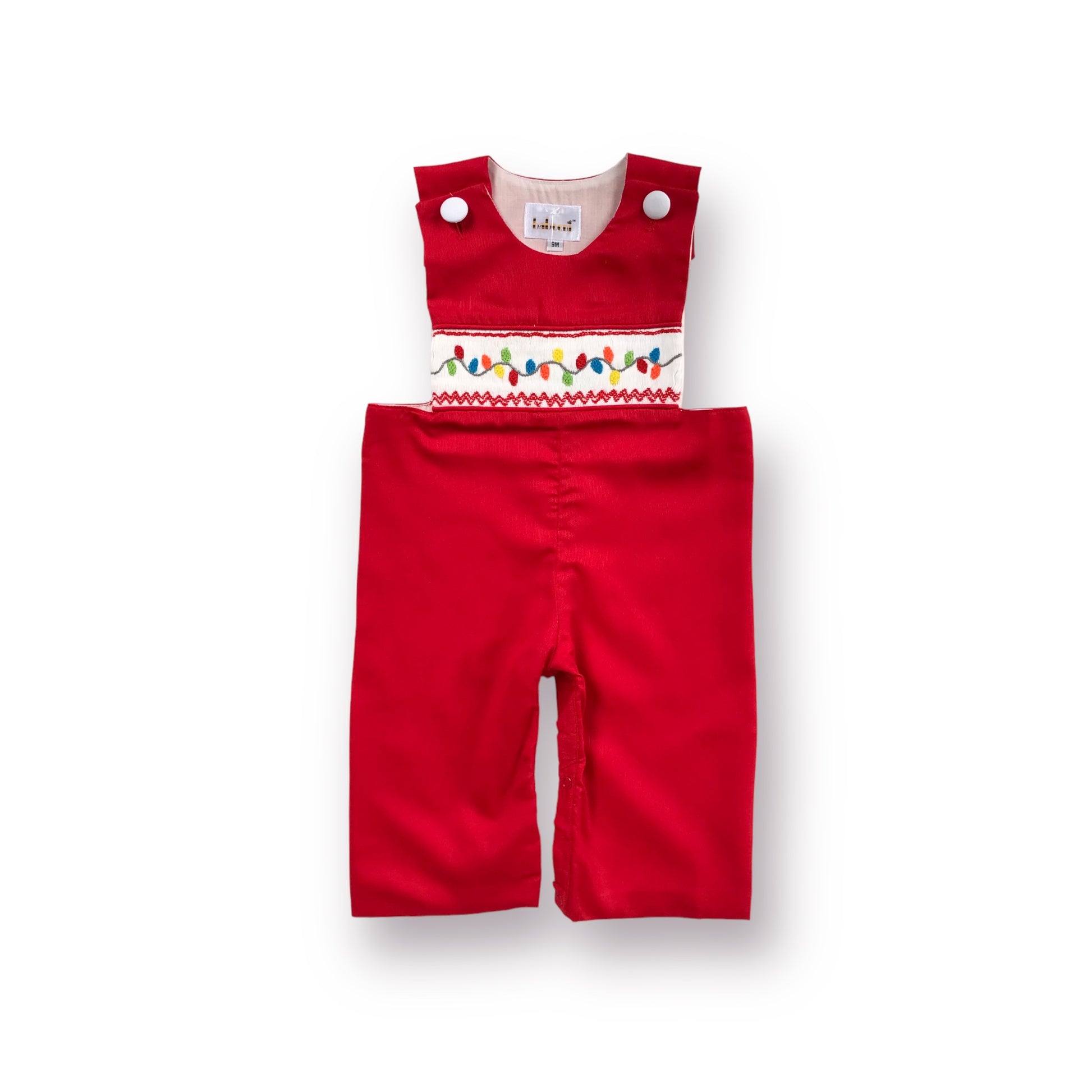 Our Merry & Bright Longall features festive Christmas lights hand-smocked across the chest.